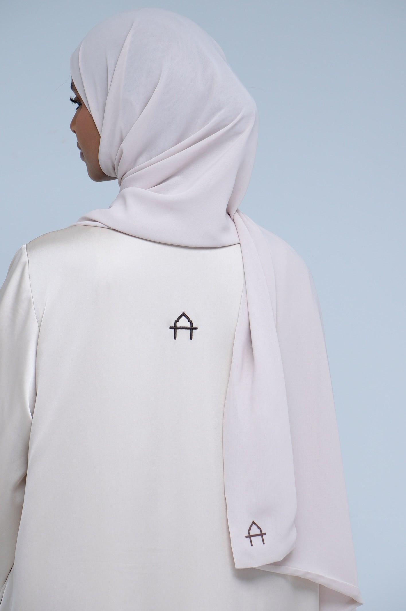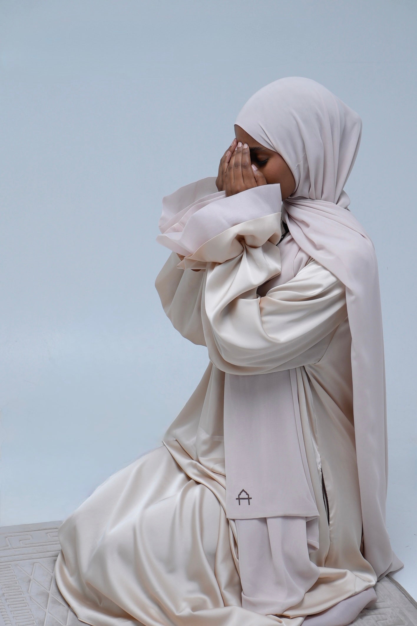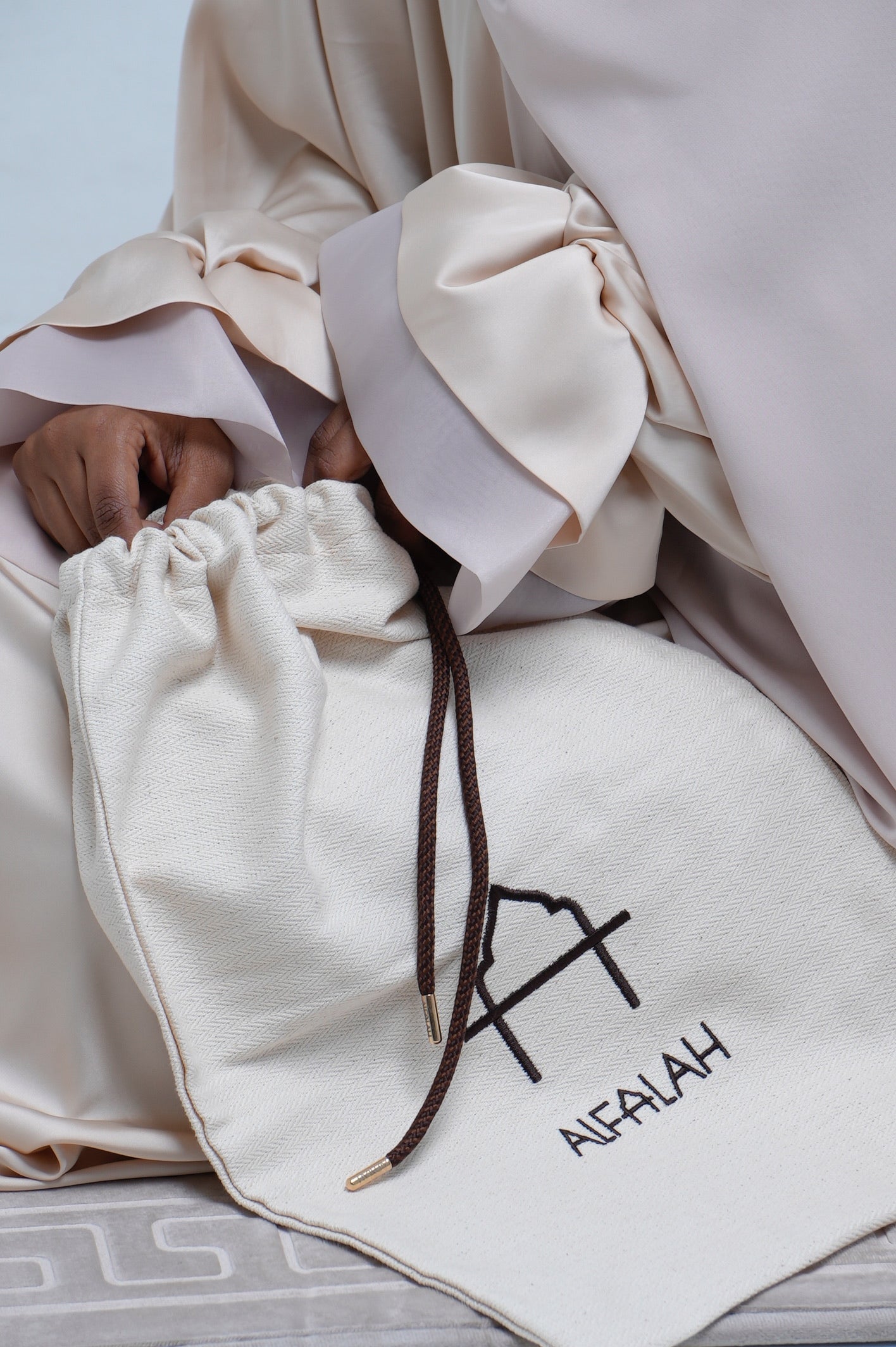 Chaque détail — de ses lignes invisibles à son tombé pur, scellé par l’arche ALFALAH — célèbre une élégance intemporelle : une robe pensée pour magnifier la prière et prolonger sa grâce jusque dans l’art d’accueillir.