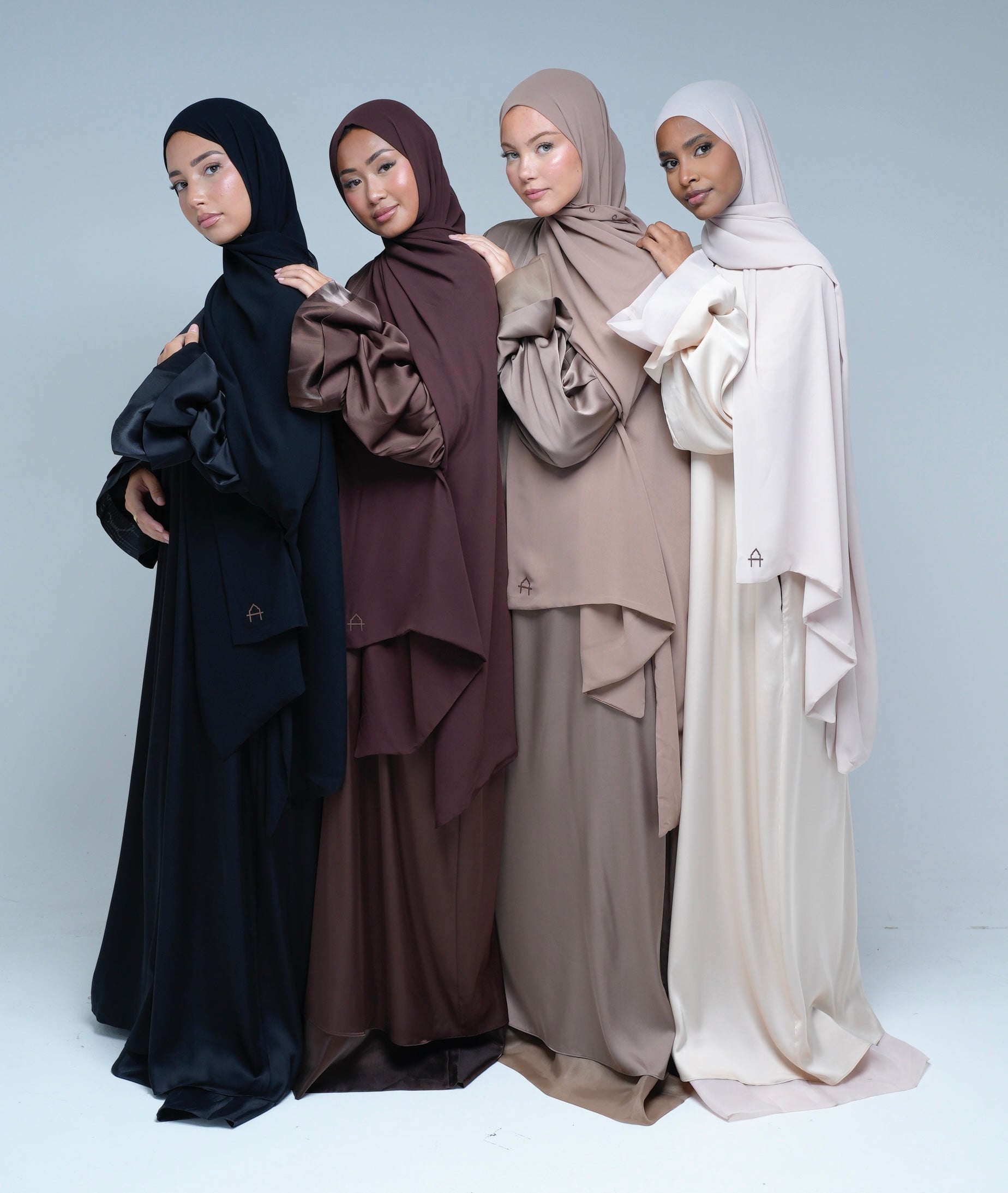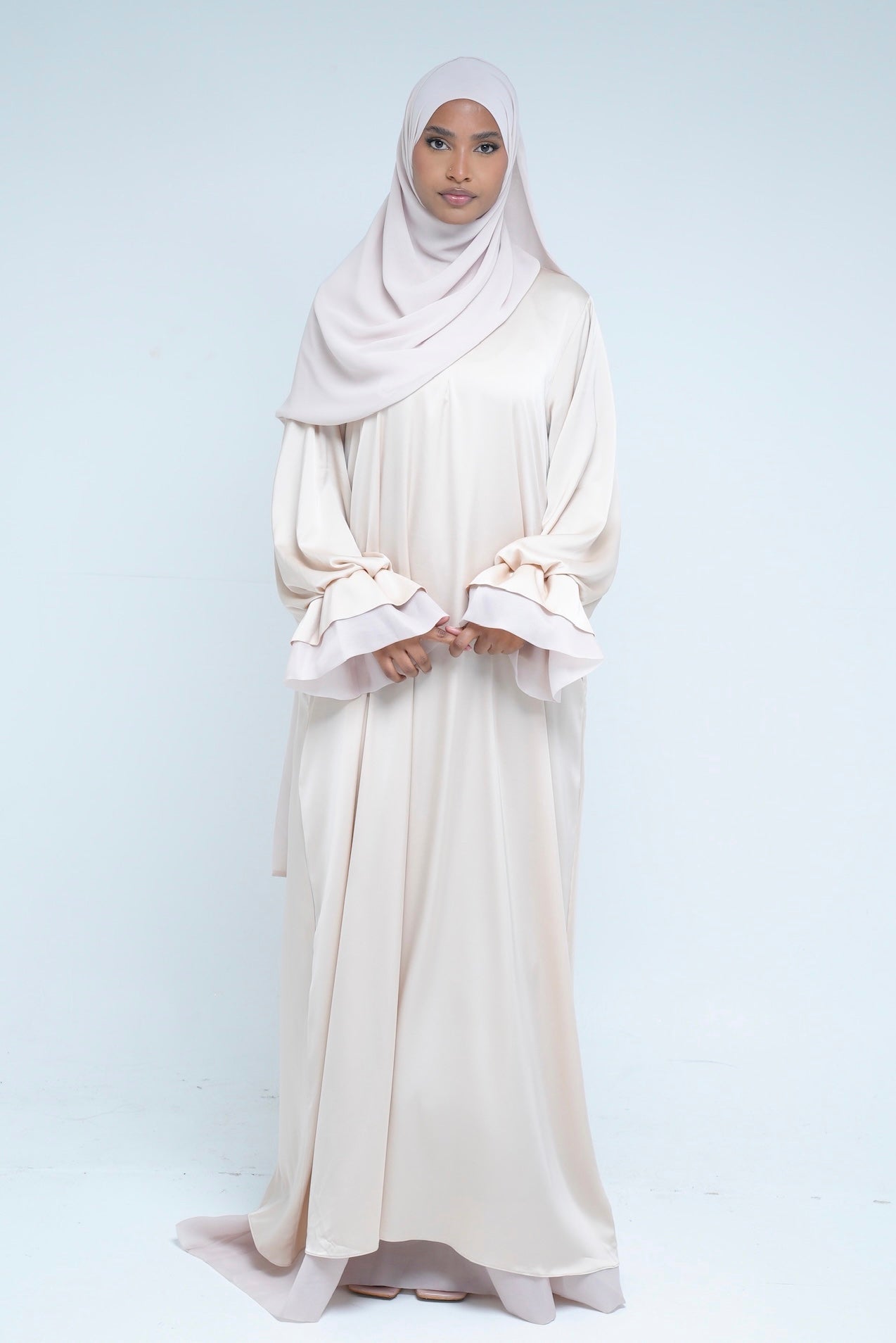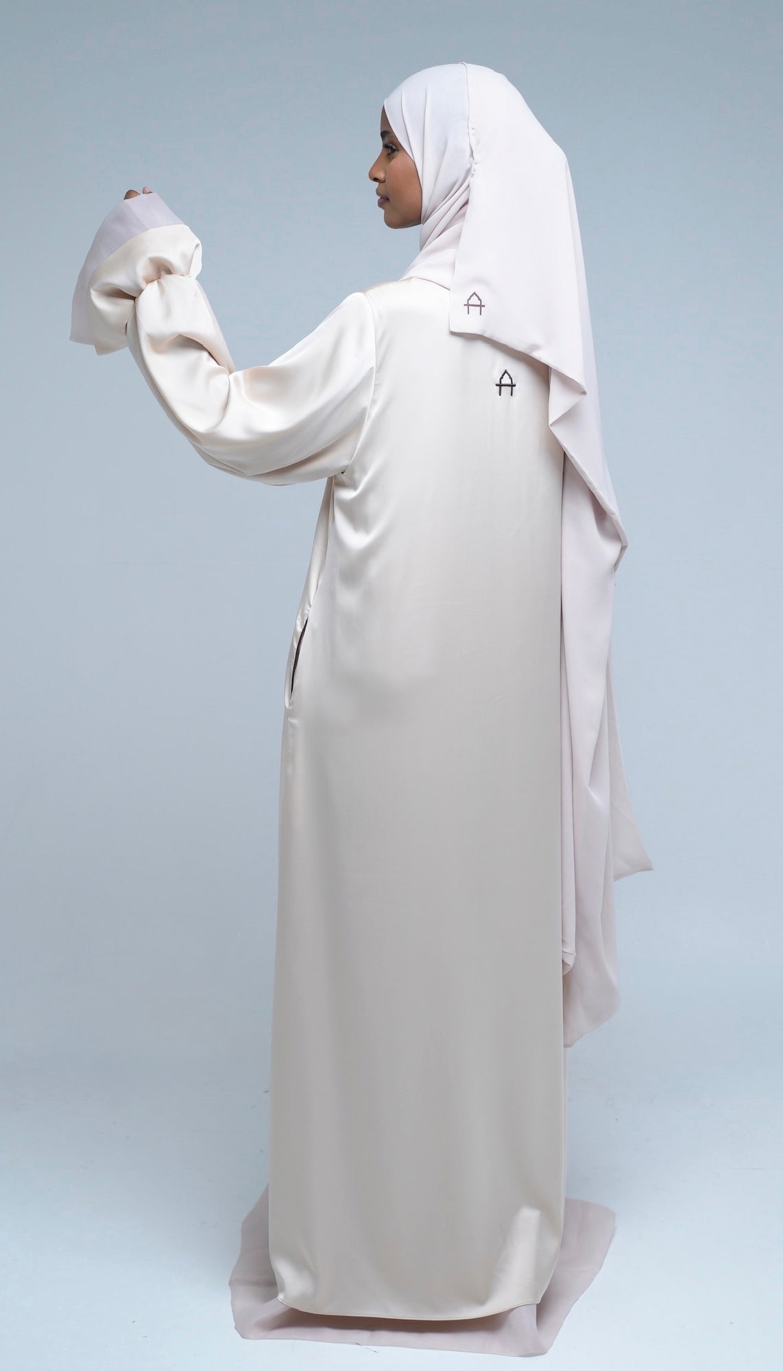Chaque détail — de ses lignes invisibles à son tombé pur, scellé par l’arche ALFALAH — célèbre une élégance intemporelle : une robe pensée pour magnifier la prière et prolonger sa grâce jusque dans l’art d’accueillir.